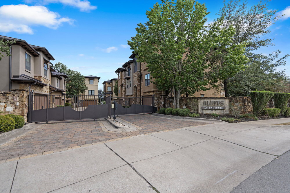 Welcome to this gorgeous 3-bedroom, 3.5-bath condo nestled in the highly sought-after gated Bluffs at Balcones community in Northwest Hills. This exceptional home seamlessly blends luxury, convenience, and breathtaking views, offering the perfect retreat in the heart of Austin. Step inside to find light-filled, open living spaces with modern updates throughout. The chef’s kitchen features granite countertops, stainless steel appliances, and abundant cabinetry, making it perfect for both everyday living and entertaining. A personal interior elevator provides effortless access from the ground floor garage to the third-floor living quarters. Enjoy two private balconies with stunning downtown views, plus a serene backyard escape surrounded by Hill Country beauty. The home also boasts a tankless water heater, washer & dryer, and a private two-car garage for ultimate comfort and convenience. Upstairs, the spacious bedrooms each feature en-suite baths, ensuring privacy and flexibility for family, guests, or a home office. With hill country views all around and quick access to Mopac, you’re minutes away from the vibrant dining and shopping scenes of Brentwood, Allandale, and Rosewood.
